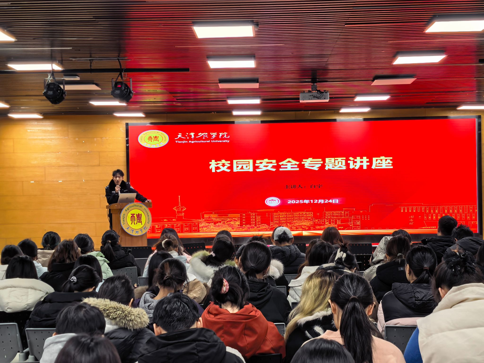 为进一步提升我校师生知恐、防恐、反诈的意识和能力,切实加强我校安全管理,提升师生防恐反诈意识和应急处理能力,12月24日我校于敏学楼三楼报告厅举办了校园安全专题讲座,主讲人:学院派出所民警白宇。
